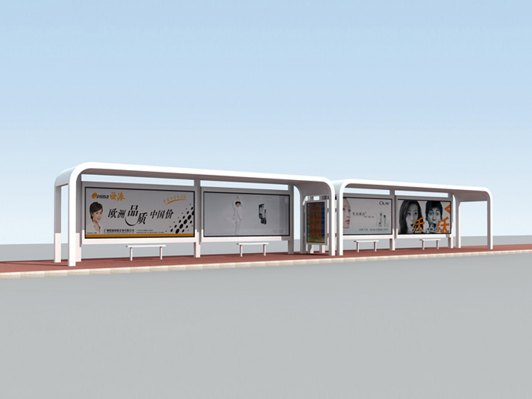 公交車候車亭一般是與公交站牌相配套的,為方便公交乘客候車時遮陽、防雨等,在車站、道路兩旁或綠化帶的港灣式公交停靠站上建設的交通設施。由于城市公交的日益發(fā)達,候車亭已發(fā)展成為城市一個不可或缺的重要組成部分,設計精美的候車亭也成為了城市一道美麗的風景。 一般候車亭棚體主要頂棚、立柱、頂弓、廣告燈箱和坐凳組成,也有用隔板來代替廣告燈箱的。