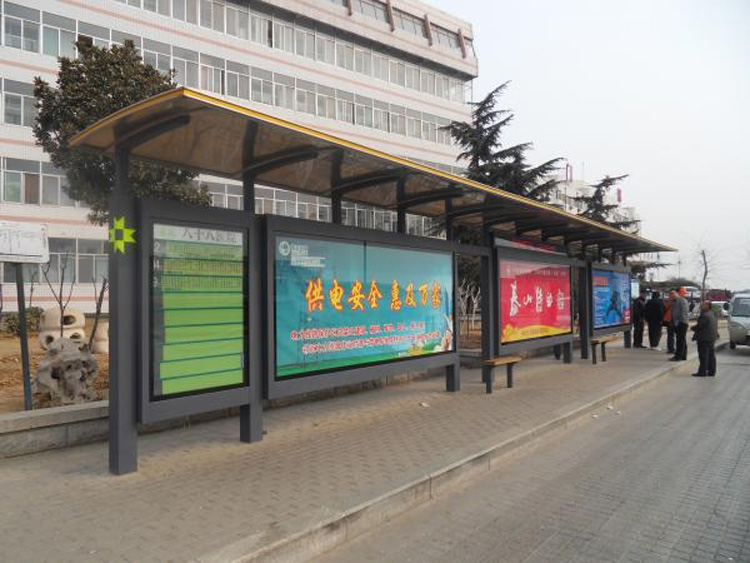 公交車候車亭一般是與公交站牌相配套的,為方便公交乘客候車時(shí)遮陽(yáng)、防雨等,在車站、道路兩旁或綠化帶的港灣式公交?空旧辖ㄔO(shè)的交通設(shè)施。由于城市公交的日益發(fā)達(dá),候車亭已發(fā)展成為城市一個(gè)不可或缺的重要組成部分,設(shè)計(jì)精美的候車亭也成為了城市一道美麗的風(fēng)景。 一般候車亭棚體主要頂棚、立柱、頂弓、廣告燈箱和坐凳組成,也有用隔板來(lái)代替廣告燈箱的。