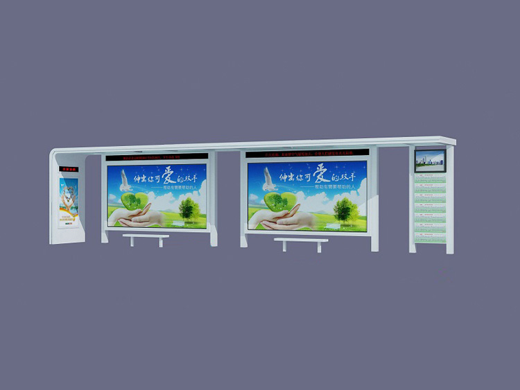 公交車候車亭一般是與公交站牌相配套的,為方便公交乘客候車時遮陽、防雨等,在車站、道路兩旁或綠化帶的港灣式公交?空旧辖ㄔO(shè)的交通設(shè)施。由于城市公交的日益發(fā)達(dá),候車亭已發(fā)展成為城市一個不可或缺的重要組成部分,設(shè)計精美的候車亭也成為了城市一道美麗的風(fēng)景。 一般候車亭棚體主要頂棚、立柱、頂弓、廣告燈箱和坐凳組成,也有用隔板來代替廣告燈箱的。