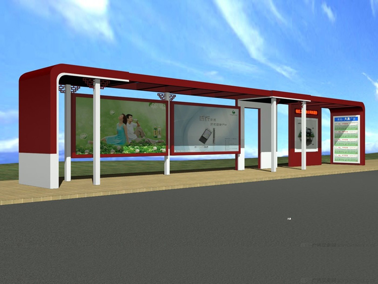 公交車候車亭一般是與公交站牌相配套的,為方便公交乘客候車時(shí)遮陽、防雨等,在車站、道路兩旁或綠化帶的港灣式公交停靠站上建設(shè)的交通設(shè)施。由于城市公交的日益發(fā)達(dá),候車亭已發(fā)展成為城市一個(gè)不可或缺的重要組成部分,設(shè)計(jì)精美的候車亭也成為了城市一道美麗的風(fēng)景。 一般候車亭棚體主要頂棚、立柱、頂弓、廣告燈箱和坐凳組成,也有用隔板來代替廣告燈箱的。