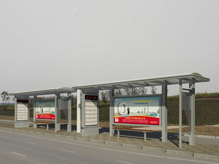 公交車候車亭一般是與公交站牌相配套的,為方便公交乘客候車時(shí)遮陽(yáng)、防雨等,在車站、道路兩旁或綠化帶的港灣式公交?空旧辖ㄔO(shè)的交通設(shè)施。由于城市公交的日益發(fā)達(dá),候車亭已發(fā)展成為城市一個(gè)不可或缺的重要組成部分,設(shè)計(jì)精美的候車亭也成為了城市一道美麗的風(fēng)景。 一般候車亭棚體主要頂棚、立柱、頂弓、廣告燈箱和坐凳組成,也有用隔板來(lái)代替廣告燈箱的。