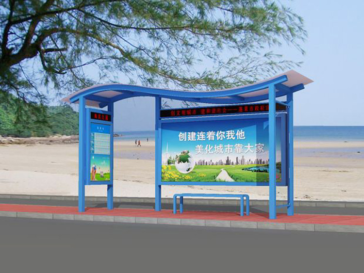 公交車候車亭一般是與公交站牌相配套的,為方便公交乘客候車時遮陽、防雨等,在車站、道路兩旁或綠化帶的港灣式公交?空旧辖ㄔO(shè)的交通設(shè)施。由于城市公交的日益發(fā)達,候車亭已發(fā)展成為城市一個不可或缺的重要組成部分,設(shè)計精美的候車亭也成為了城市一道美麗的風(fēng)景。 一般候車亭棚體主要頂棚、立柱、頂弓、廣告燈箱和坐凳組成,也有用隔板來代替廣告燈箱的。