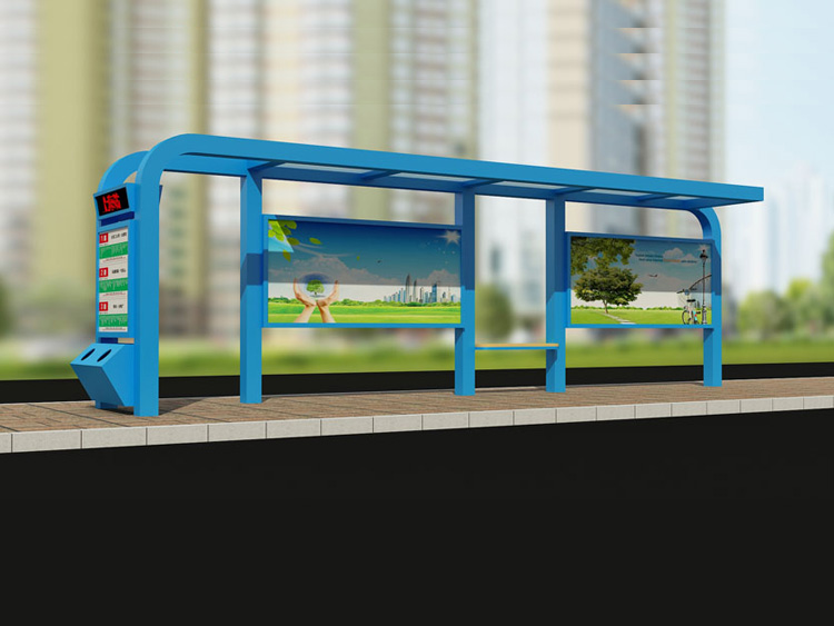 公交車候車亭一般是與公交站牌相配套的,為方便公交乘客候車時遮陽、防雨等,在車站、道路兩旁或綠化帶的港灣式公交?空旧辖ㄔO(shè)的交通設(shè)施。由于城市公交的日益發(fā)達,候車亭已發(fā)展成為城市一個不可或缺的重要組成部分,設(shè)計精美的候車亭也成為了城市一道美麗的風景。 一般候車亭棚體主要頂棚、立柱、頂弓、廣告燈箱和坐凳組成,也有用隔板來代替廣告燈箱的。