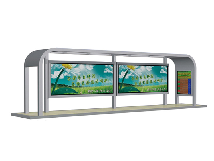 公交車候車亭一般是與公交站牌相配套的,為方便公交乘客候車時遮陽、防雨等,在車站、道路兩旁或綠化帶的港灣式公交停靠站上建設(shè)的交通設(shè)施。由于城市公交的日益發(fā)達,候車亭已發(fā)展成為城市一個不可或缺的重要組成部分,設(shè)計精美的候車亭也成為了城市一道美麗的風(fēng)景。 一般候車亭棚體主要頂棚、立柱、頂弓、廣告燈箱和坐凳組成,也有用隔板來代替廣告燈箱的。