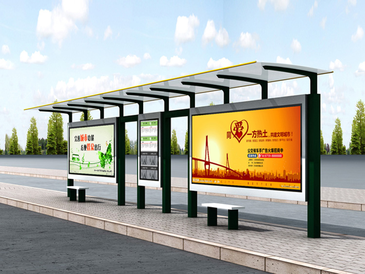 公交車候車亭一般是與公交站牌相配套的,為方便公交乘客候車時遮陽、防雨等,在車站、道路兩旁或綠化帶的港灣式公交?空旧辖ㄔO(shè)的交通設(shè)施。由于城市公交的日益發(fā)達,候車亭已發(fā)展成為城市一個不可或缺的重要組成部分,設(shè)計精美的候車亭也成為了城市一道美麗的風(fēng)景。 一般候車亭棚體主要頂棚、立柱、頂弓、廣告燈箱和坐凳組成,也有用隔板來代替廣告燈箱的。