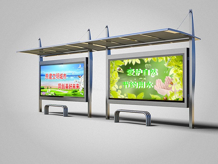 公交車候車亭一般是與公交站牌相配套的,為方便公交乘客候車時遮陽、防雨等,在車站、道路兩旁或綠化帶的港灣式公交?空旧辖ㄔO(shè)的交通設(shè)施。由于城市公交的日益發(fā)達,候車亭已發(fā)展成為城市一個不可或缺的重要組成部分,設(shè)計精美的候車亭也成為了城市一道美麗的風景。 一般候車亭棚體主要頂棚、立柱、頂弓、廣告燈箱和坐凳組成,也有用隔板來代替廣告燈箱的。