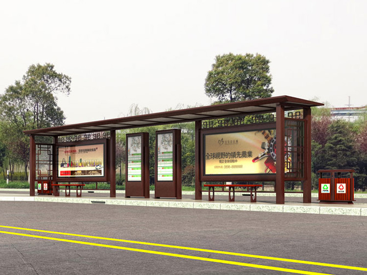 公交車候車亭一般是與公交站牌相配套的,為方便公交乘客候車時遮陽、防雨等,在車站、道路兩旁或綠化帶的港灣式公交?空旧辖ㄔO(shè)的交通設(shè)施。由于城市公交的日益發(fā)達(dá),候車亭已發(fā)展成為城市一個不可或缺的重要組成部分,設(shè)計精美的候車亭也成為了城市一道美麗的風(fēng)景。 一般候車亭棚體主要頂棚、立柱、頂弓、廣告燈箱和坐凳組成,也有用隔板來代替廣告燈箱的。