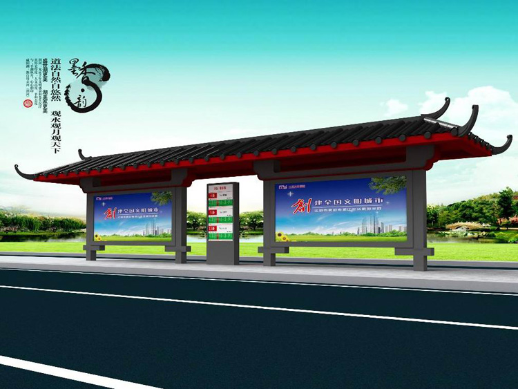 公交車候車亭一般是與公交站牌相配套的,為方便公交乘客候車時遮陽、防雨等,在車站、道路兩旁或綠化帶的港灣式公交?空旧辖ㄔO(shè)的交通設(shè)施。由于城市公交的日益發(fā)達,候車亭已發(fā)展成為城市一個不可或缺的重要組成部分,設(shè)計精美的候車亭也成為了城市一道美麗的風景。 一般候車亭棚體主要頂棚、立柱、頂弓、廣告燈箱和坐凳組成,也有用隔板來代替廣告燈箱的。