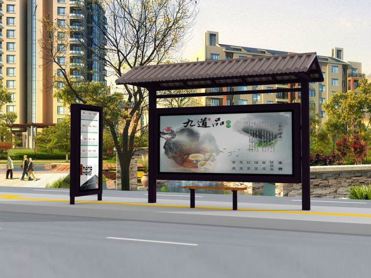 公交車候車亭一般是與公交站牌相配套的,為方便公交乘客候車時遮陽、防雨等,在車站、道路兩旁或綠化帶的港灣式公交停靠站上建設的交通設施。由于城市公交的日益發(fā)達,候車亭已發(fā)展成為城市一個不可或缺的重要組成部分,設計精美的候車亭也成為了城市一道美麗的風景。 一般候車亭棚體主要頂棚、立柱、頂弓、廣告燈箱和坐凳組成,也有用隔板來代替廣告燈箱的。
