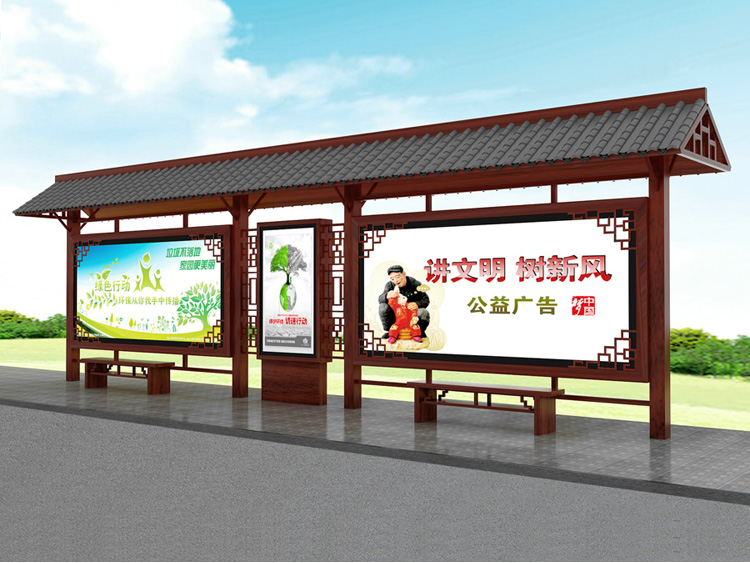 公交車候車亭一般是與公交站牌相配套的,為方便公交乘客候車時遮陽、防雨等,在車站、道路兩旁或綠化帶的港灣式公交?空旧辖ㄔO(shè)的交通設(shè)施。由于城市公交的日益發(fā)達,候車亭已發(fā)展成為城市一個不可或缺的重要組成部分,設(shè)計精美的候車亭也成為了城市一道美麗的風(fēng)景。 一般候車亭棚體主要頂棚、立柱、頂弓、廣告燈箱和坐凳組成,也有用隔板來代替廣告燈箱的。