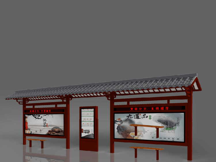 公交車候車亭一般是與公交站牌相配套的,為方便公交乘客候車時遮陽、防雨等,在車站、道路兩旁或綠化帶的港灣式公交?空旧辖ㄔO的交通設施。由于城市公交的日益發(fā)達,候車亭已發(fā)展成為城市一個不可或缺的重要組成部分,設計精美的候車亭也成為了城市一道美麗的風景。 一般候車亭棚體主要頂棚、立柱、頂弓、廣告燈箱和坐凳組成,也有用隔板來代替廣告燈箱的。