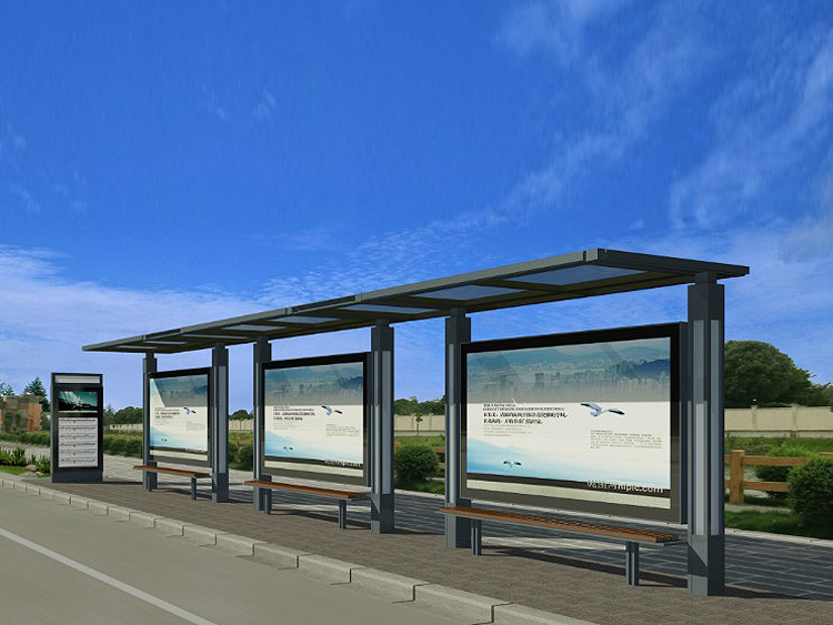 公交車候車亭一般是與公交站牌相配套的,為方便公交乘客候車時遮陽、防雨等,在車站、道路兩旁或綠化帶的港灣式公交停靠站上建設的交通設施。由于城市公交的日益發達,候車亭已發展成為城市一個不可或缺的重要組成部分,設計精美的候車亭也成為了城市一道美麗的風景。 一般候車亭棚體主要頂棚、立柱、頂弓、廣告燈箱和坐凳組成,也有用隔板來代替廣告燈箱的。