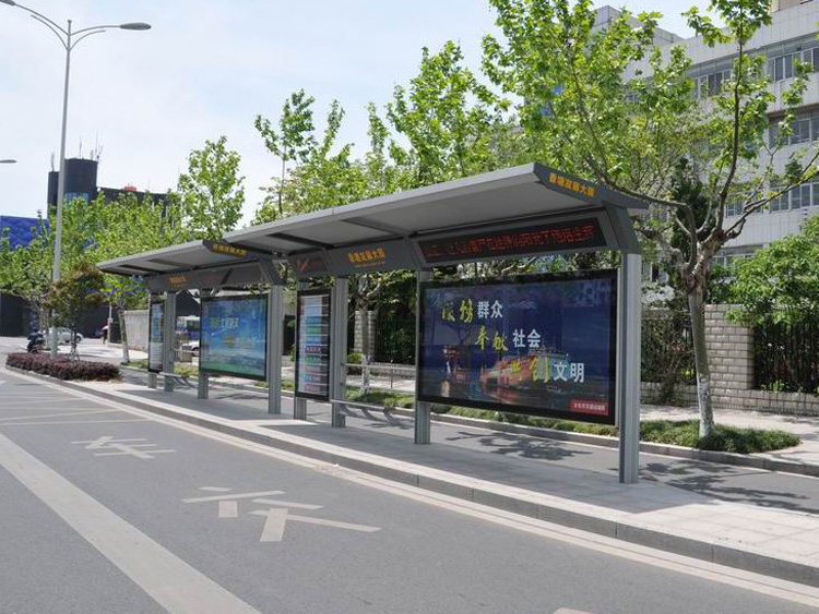 公交車候車亭一般是與公交站牌相配套的,為方便公交乘客候車時遮陽、防雨等,在車站、道路兩旁或綠化帶的港灣式公交停靠站上建設的交通設施。由于城市公交的日益發達,候車亭已發展成為城市一個不可或缺的重要組成部分,設計精美的候車亭也成為了城市一道美麗的風景。 一般候車亭棚體主要頂棚、立柱、頂弓、廣告燈箱和坐凳組成,也有用隔板來代替廣告燈箱的。