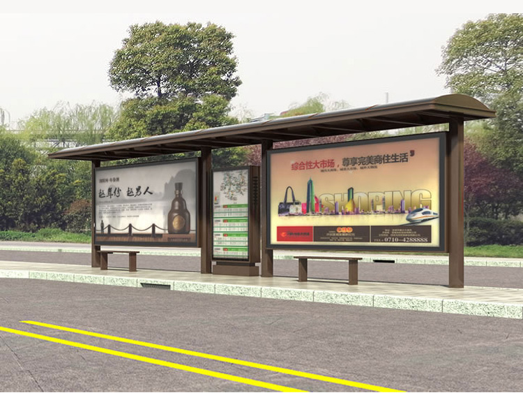 公交車候車亭一般是與公交站牌相配套的,為方便公交乘客候車時遮陽、防雨等,在車站、道路兩旁或綠化帶的港灣式公交停靠站上建設的交通設施。由于城市公交的日益發達,候車亭已發展成為城市一個不可或缺的重要組成部分,設計精美的候車亭也成為了城市一道美麗的風景。 一般候車亭棚體主要頂棚、立柱、頂弓、廣告燈箱和坐凳組成,也有用隔板來代替廣告燈箱的。