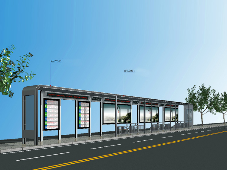 公交車候車亭一般是與公交站牌相配套的,為方便公交乘客候車時遮陽、防雨等,在車站、道路兩旁或綠化帶的港灣式公交停靠站上建設的交通設施。由于城市公交的日益發達,候車亭已發展成為城市一個不可或缺的重要組成部分,設計精美的候車亭也成為了城市一道美麗的風景。 一般候車亭棚體主要頂棚、立柱、頂弓、廣告燈箱和坐凳組成,也有用隔板來代替廣告燈箱的。