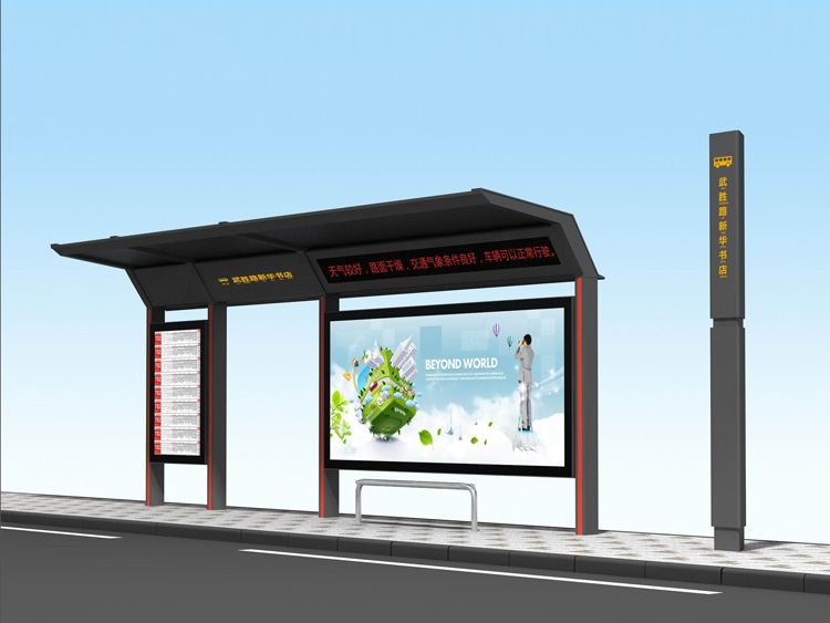 公交車候車亭一般是與公交站牌相配套的,為方便公交乘客候車時遮陽、防雨等,在車站、道路兩旁或綠化帶的港灣式公交停靠站上建設的交通設施。由于城市公交的日益發達,候車亭已發展成為城市一個不可或缺的重要組成部分,設計精美的候車亭也成為了城市一道美麗的風景。 一般候車亭棚體主要頂棚、立柱、頂弓、廣告燈箱和坐凳組成,也有用隔板來代替廣告燈箱的。