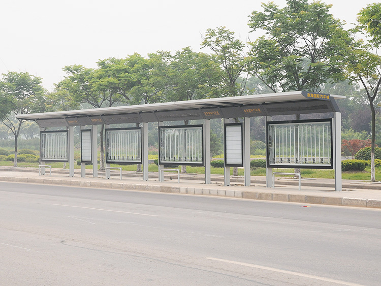 公交車候車亭一般是與公交站牌相配套的,為方便公交乘客候車時(shí)遮陽、防雨等,在車站、道路兩旁或綠化帶的港灣式公交停靠站上建設(shè)的交通設(shè)施。由于城市公交的日益發(fā)達(dá),候車亭已發(fā)展成為城市一個(gè)不可或缺的重要組成部分,設(shè)計(jì)精美的候車亭也成為了城市一道美麗的風(fēng)景。 一般候車亭棚體主要頂棚、立柱、頂弓、廣告燈箱和坐凳組成,也有用隔板來代替廣告燈箱的。