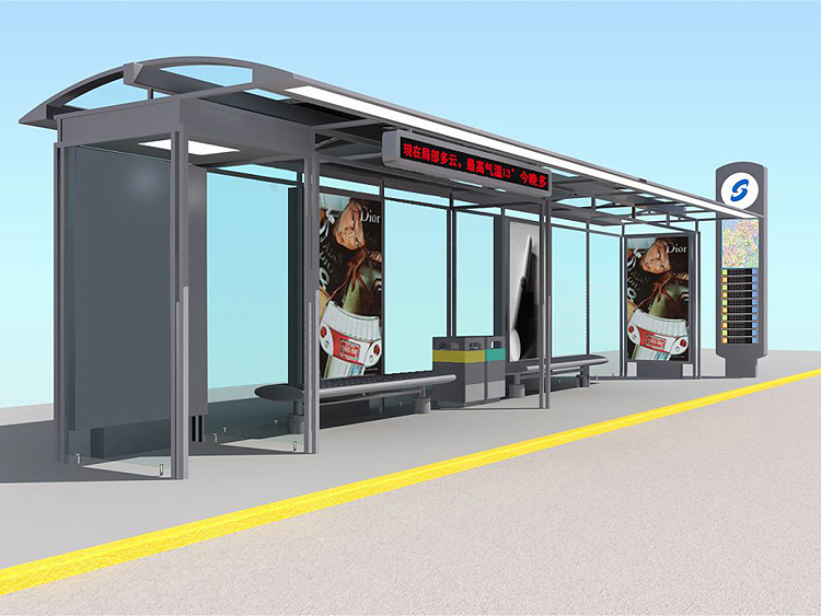 公交車候車亭一般是與公交站牌相配套的,為方便公交乘客候車時遮陽、防雨等,在車站、道路兩旁或綠化帶的港灣式公交停靠站上建設的交通設施。由于城市公交的日益發達,候車亭已發展成為城市一個不可或缺的重要組成部分,設計精美的候車亭也成為了城市一道美麗的風景。 一般候車亭棚體主要頂棚、立柱、頂弓、廣告燈箱和坐凳組成,也有用隔板來代替廣告燈箱的。