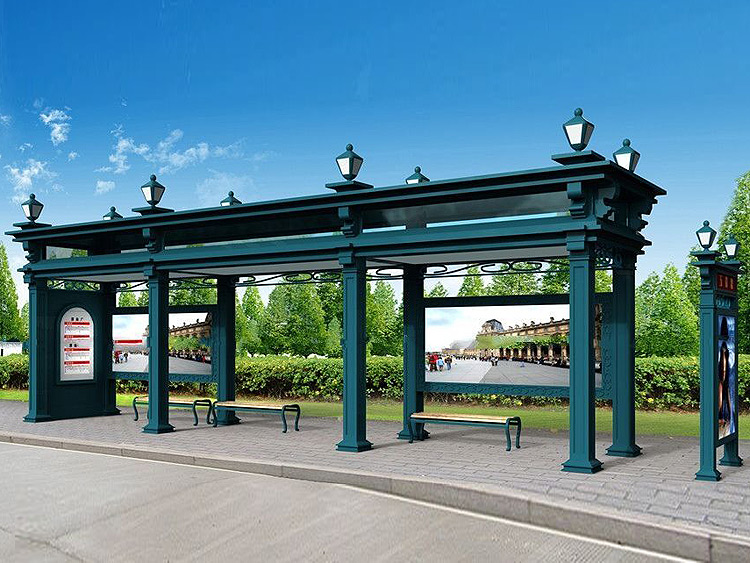 公交車候車亭一般是與公交站牌相配套的,為方便公交乘客候車時遮陽、防雨等,在車站、道路兩旁或綠化帶的港灣式公交?空旧辖ㄔO的交通設施。由于城市公交的日益發(fā)達,候車亭已發(fā)展成為城市一個不可或缺的重要組成部分,設計精美的候車亭也成為了城市一道美麗的風景。 一般候車亭棚體主要頂棚、立柱、頂弓、廣告燈箱和坐凳組成,也有用隔板來代替廣告燈箱的。