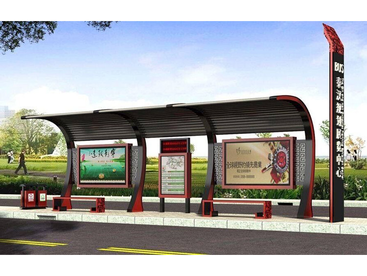公交車候車亭一般是與公交站牌相配套的,為方便公交乘客候車時遮陽、防雨等,在車站、道路兩旁或綠化帶的港灣式公交?空旧辖ㄔO(shè)的交通設(shè)施。由于城市公交的日益發(fā)達(dá),候車亭已發(fā)展成為城市一個不可或缺的重要組成部分,設(shè)計精美的候車亭也成為了城市一道美麗的風(fēng)景。 一般候車亭棚體主要頂棚、立柱、頂弓、廣告燈箱和坐凳組成,也有用隔板來代替廣告燈箱的。